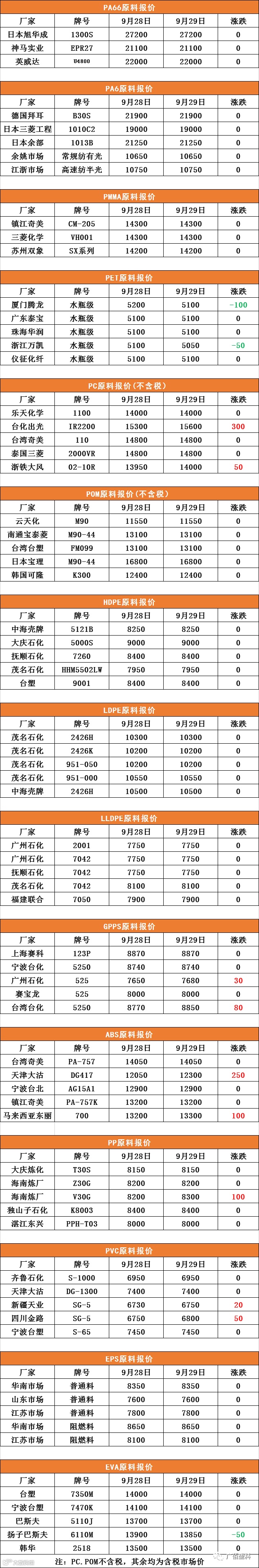 PC、POM不含税,其余均为含税市场价
