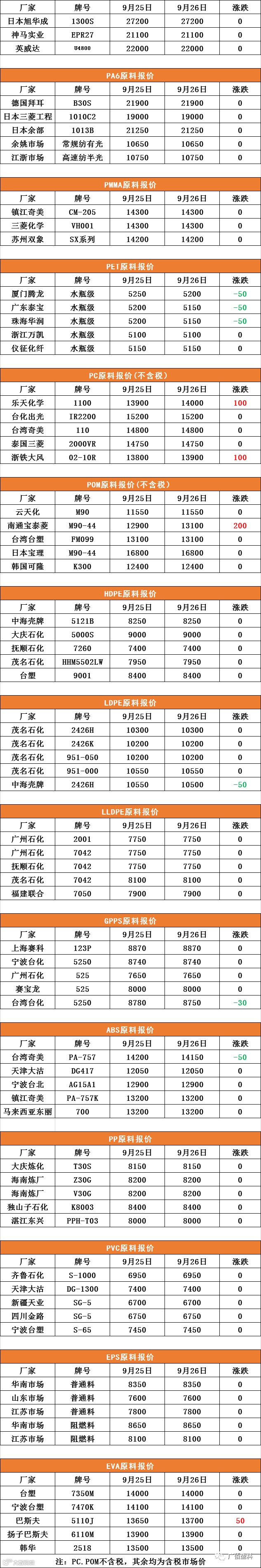 PC、POM不含税,其余均为含税市场价