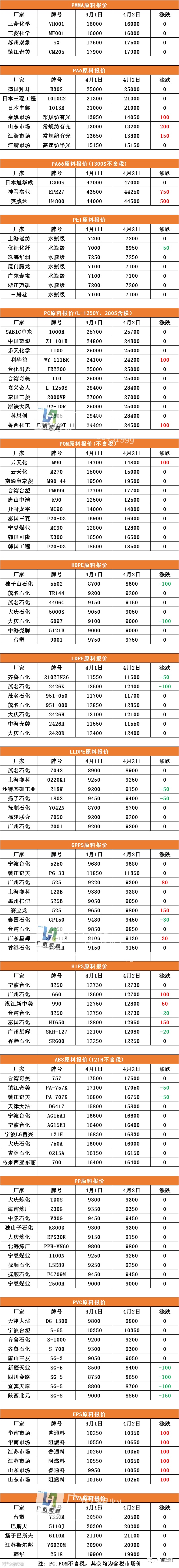 导读:广佰塑料-原料报价PC、POM不含税,其中含税市场价注 表格中报价均来自网络-