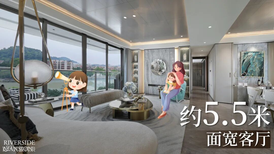 南北对流双阳台设计,一面是项目打造的岭南园林风光,一面是约7KM自然江景,江与园的景观都在眼中。