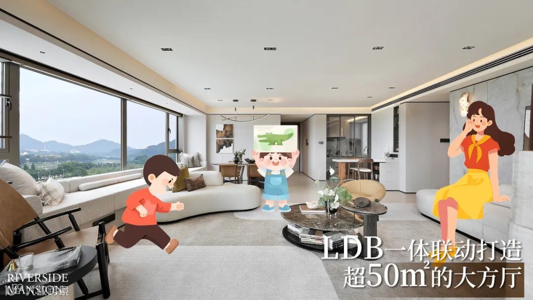 项目融合客厅、餐厅与阳台三重空间,以LDB一体联动打造超50㎡的大方厅。