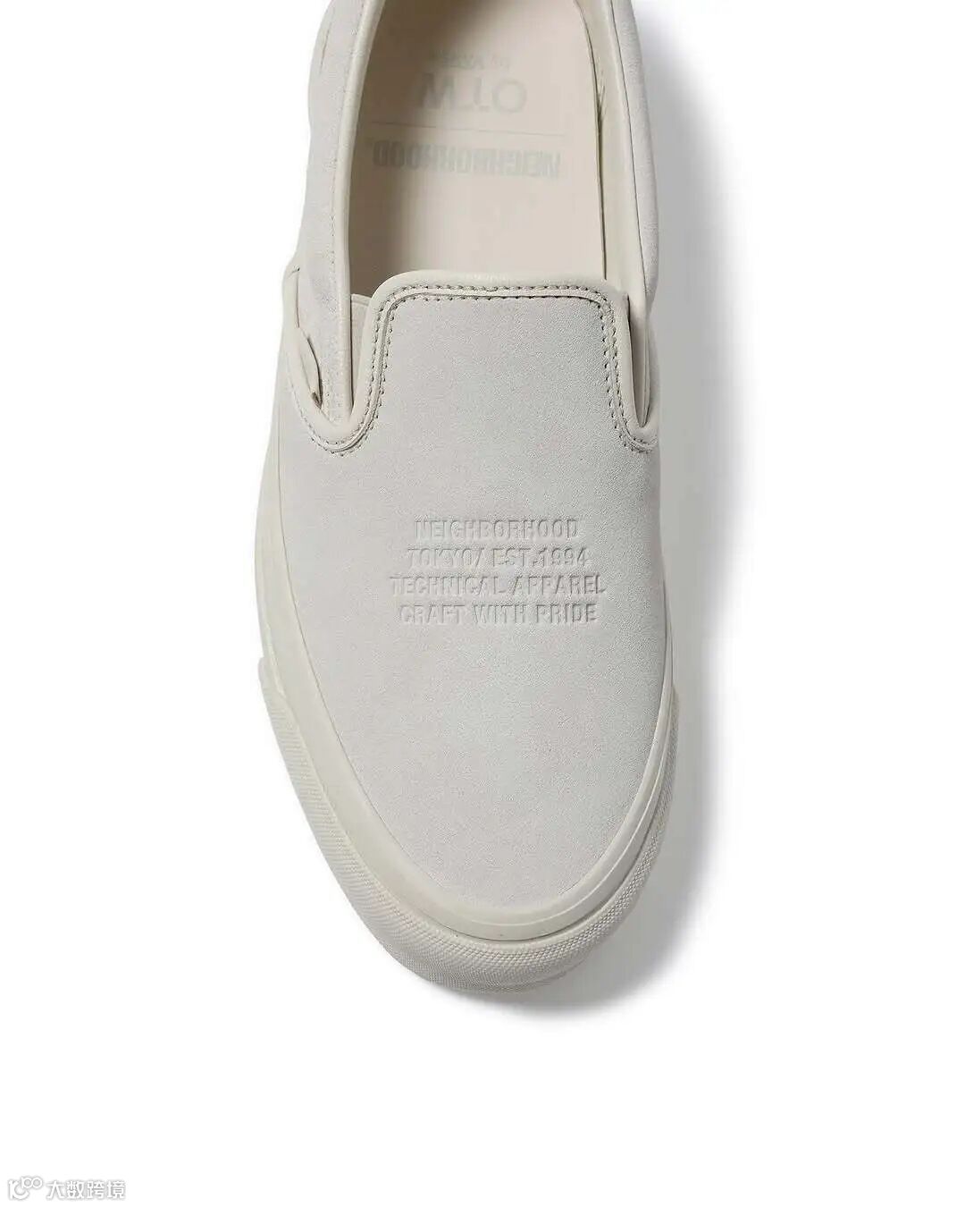 Classic Slip-On 98则以更内敛的方式展现联名身份,鞋后跟压有“NBHD”品牌标识,鞋面饰以“Neighborhood Tokyo Est.1994 Technical Apparel Craft With Pride”字样,将街头工艺美学浓缩于鞋履语言中。