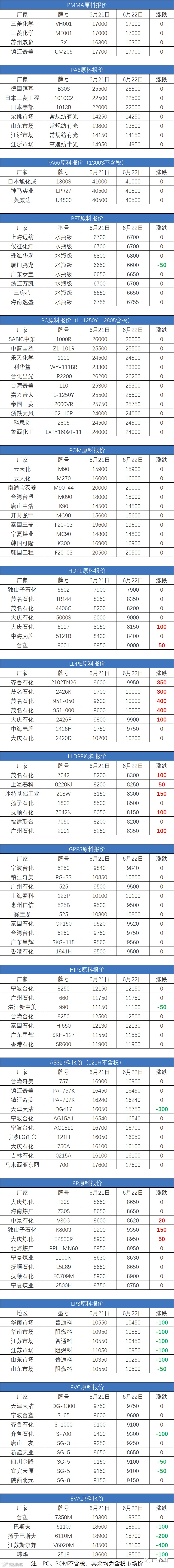 6月22日原料报价