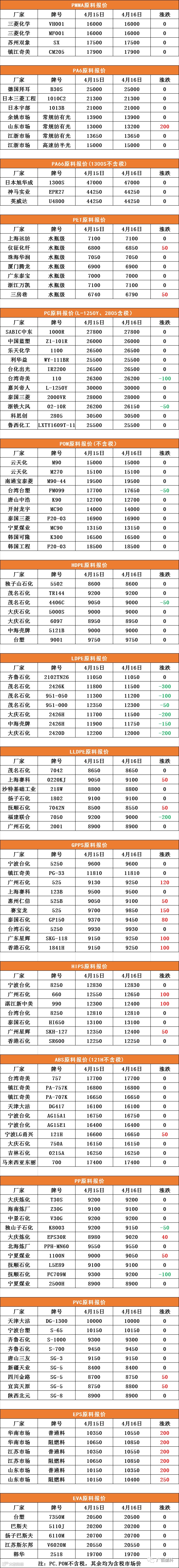 导读:广佰塑料-原料报价PC、POM不含税,其中含税市场价注 表格中报价均来自网络-
