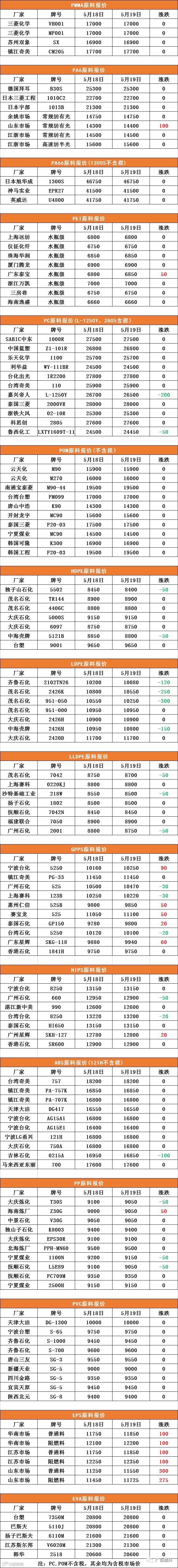 导读:广佰塑料-原料报价PC、POM不含税,其中含税市场价注 表格中报价均来自网络-