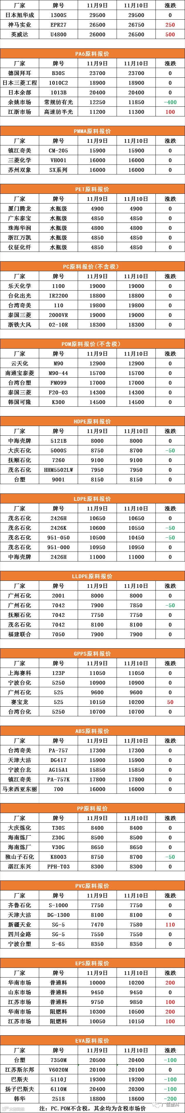 PC、POM不含税,其中含税市场价