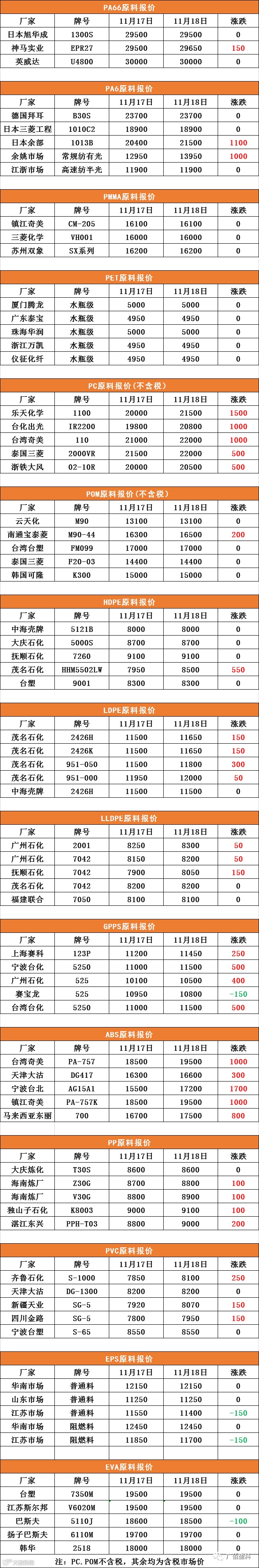 11月18号原料报价