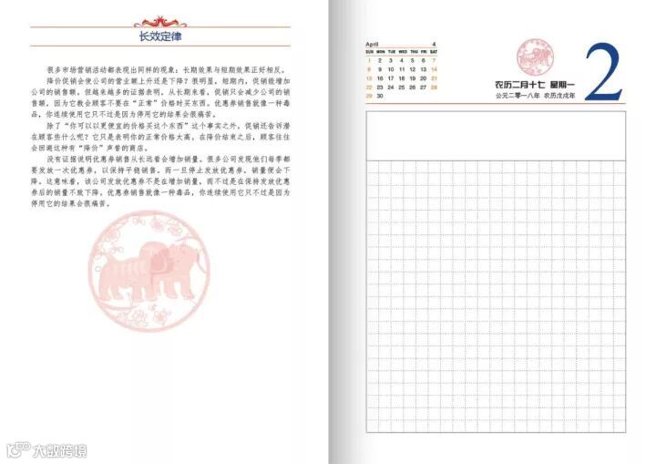 每一页日历,左边是管理内容,右边则我们特意设计的是被称为