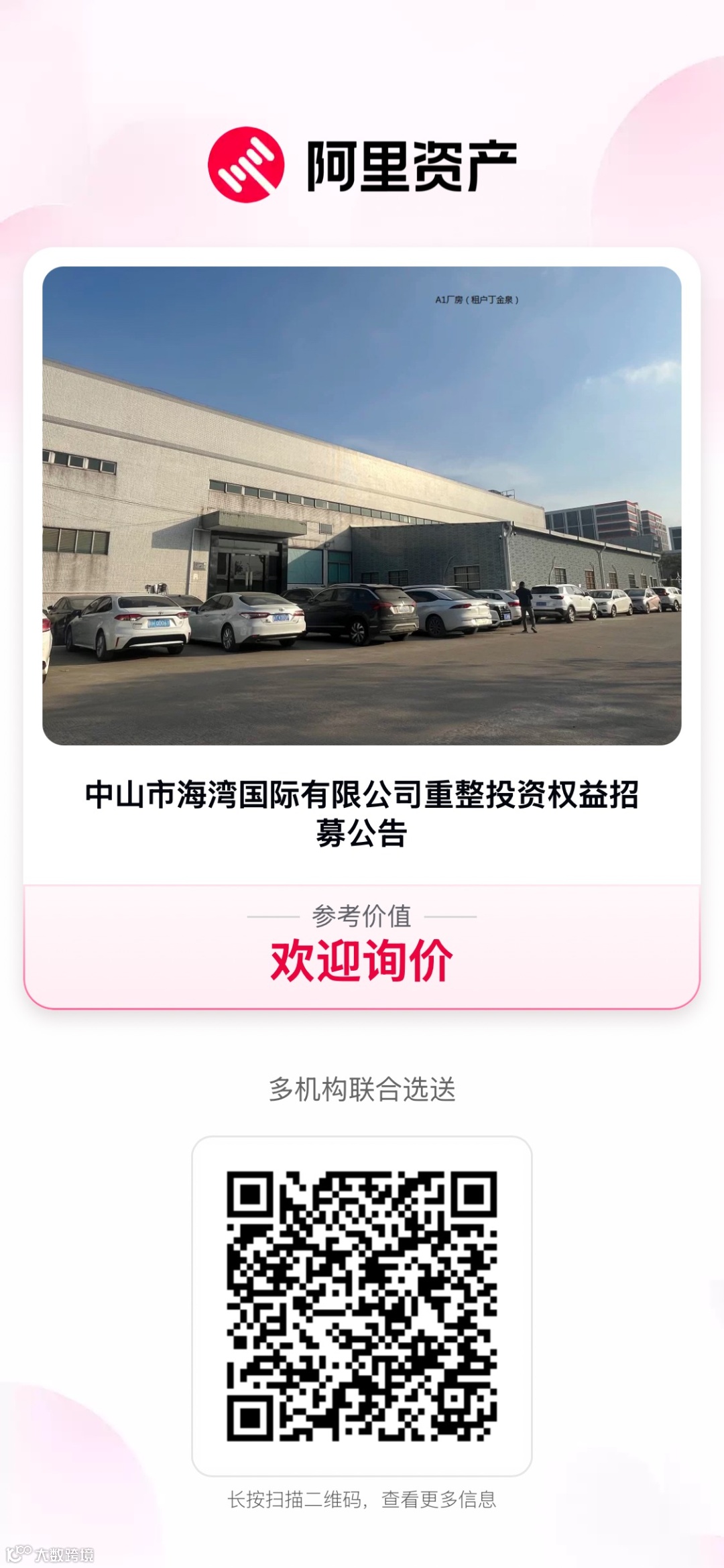 广州广永投资管理有限公司为中山市海湾国际有限公司破产案的最大债权人,现对该公司招募重整投资人。招募时间从发布之日起至2026年6月30日止。重整计划草案修订版规定的重整资金总额:人民币273,641,271.36元(大写:贰亿柒仟叁佰陆拾肆万壹仟贰佰柒拾壹元叁角陆分),该金额已包含重整投资人垫付给对应抵押权人的剩余征地补偿款10,533,678元。