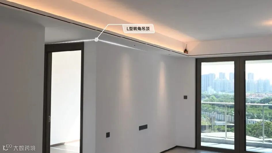 L 型转角吊顶,轻钢龙骨石膏板加固,降低开裂风险,美学与稳固兼得,增添层次感,整洁美观。