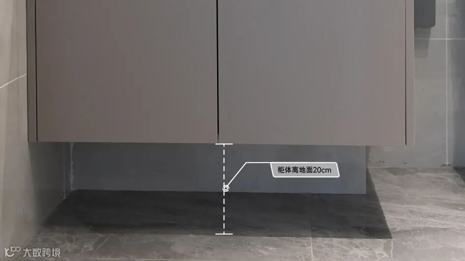 卫浴空间收纳同样充裕,台下柜采用离地设计,卫浴门超常规高度,防水石收窄处理,既能更好地防水,又可减少使用过程中的意外状况。