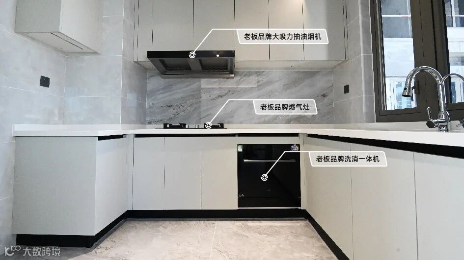 厨房空间独具匠心,配备老板三件套,上下双收纳柜体系统,充分尊重市桥人居所需的那份烟火气息。