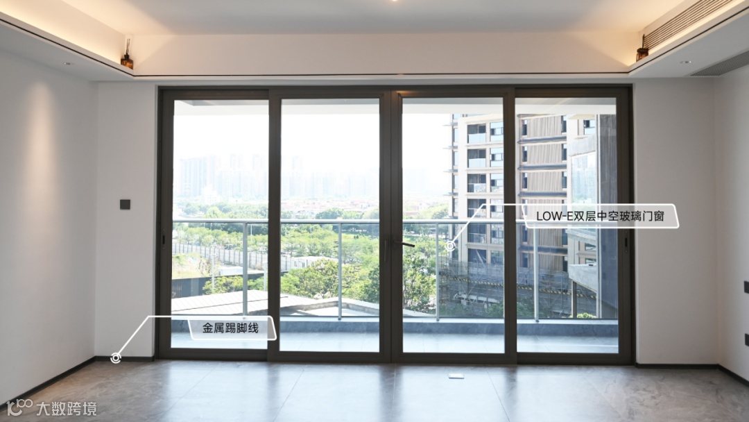 LOW-E 双层中空玻璃门窗,阻隔噪音,透光性佳,置于南北对流双阳台,观景通透,舒适自然。