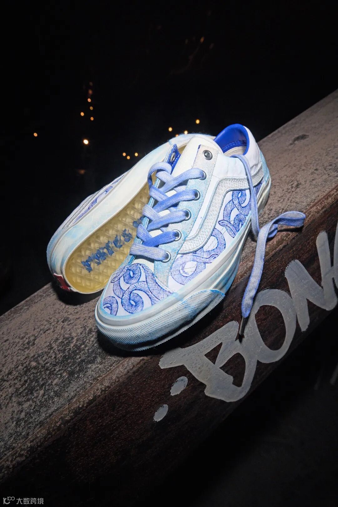 其中,Old Skool 36 鞋款,鞋面采用浅蓝色做旧风格,鞋后跟的“蛇”字刺绣与鞋身侧面的蓝色蛇纹图案相互呼应,鞋舌内侧、鞋垫及水晶华夫大底均印有亮蓝色“TO LOVE AND BE LOVED”主题文字,共同形成独特视觉美感;