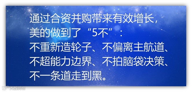 但这还不足以说明,合资并购就能带来有效增长。透过美的眼花缭乱的资本运作,我们更需要看清楚的是,美的合资并购的内容和逻辑。