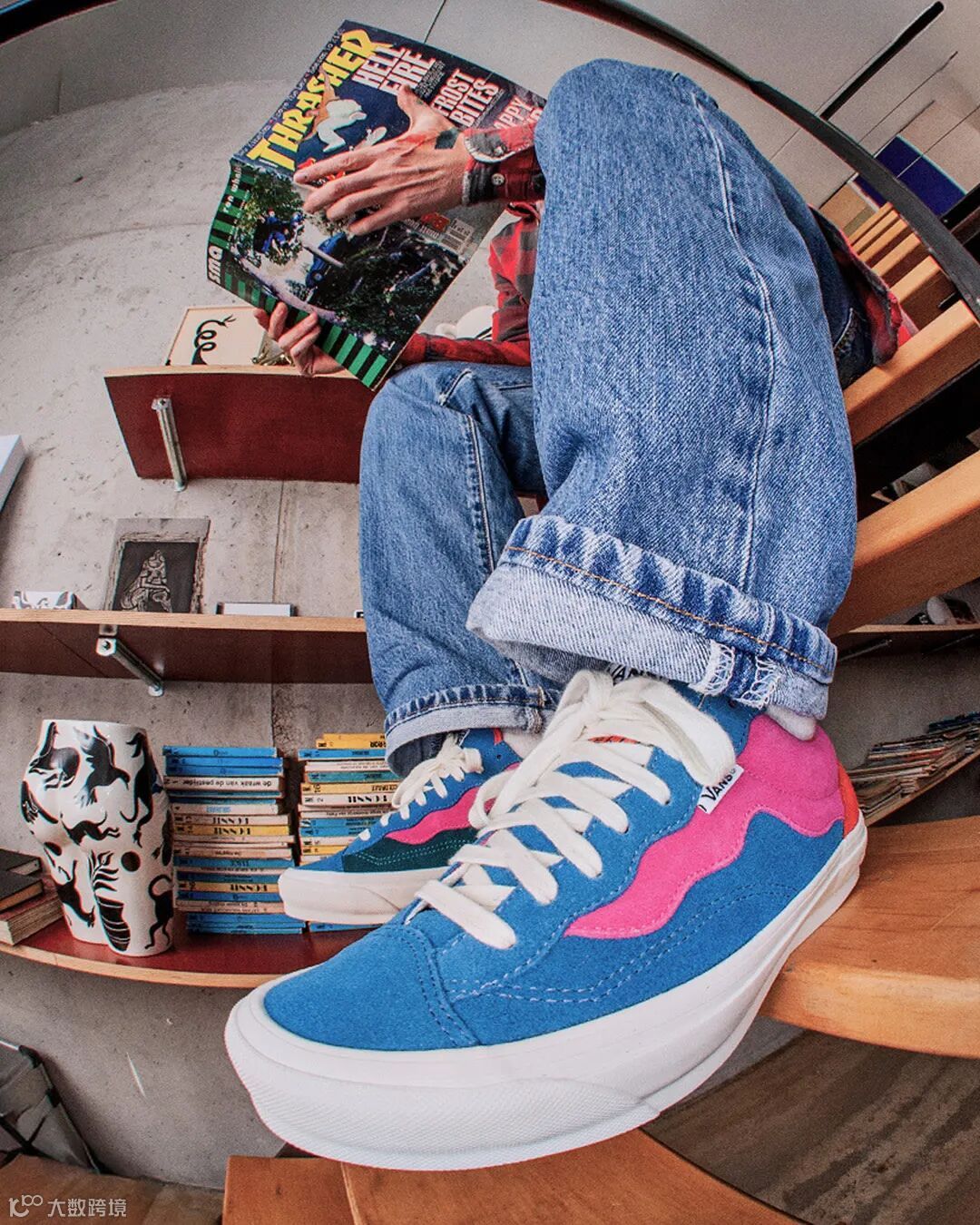 此次联名鞋款采用柔软的麂皮材质,搭配 Parra 标志性的波浪形撞色设计和不对称细节,打造出简约精致的外观。趣味十足的字体印在定制鞋舌标签和不对称鞋垫上,更添个性,并印有“Don’t forget to skate in these.”(别忘了穿着它们滑板)的温馨提示。