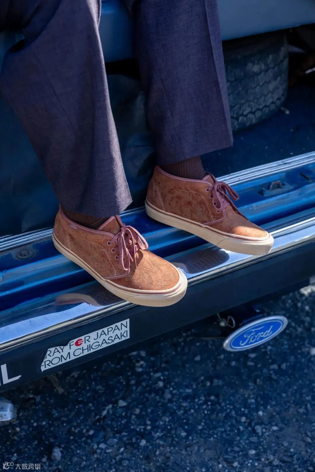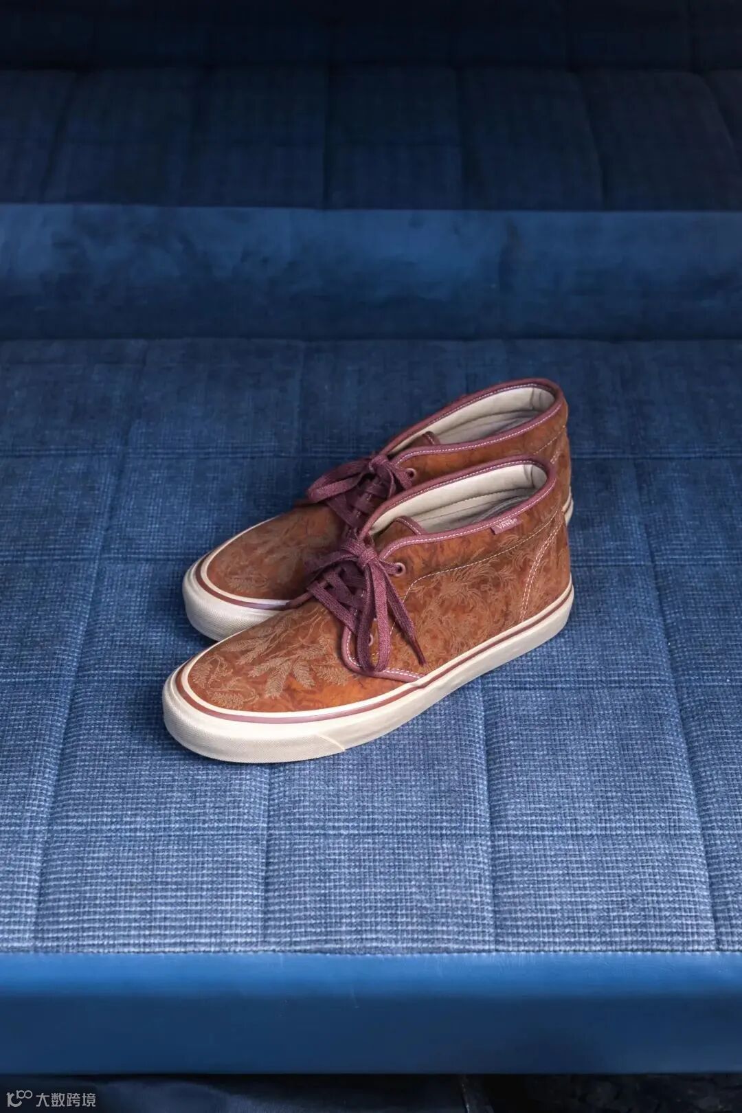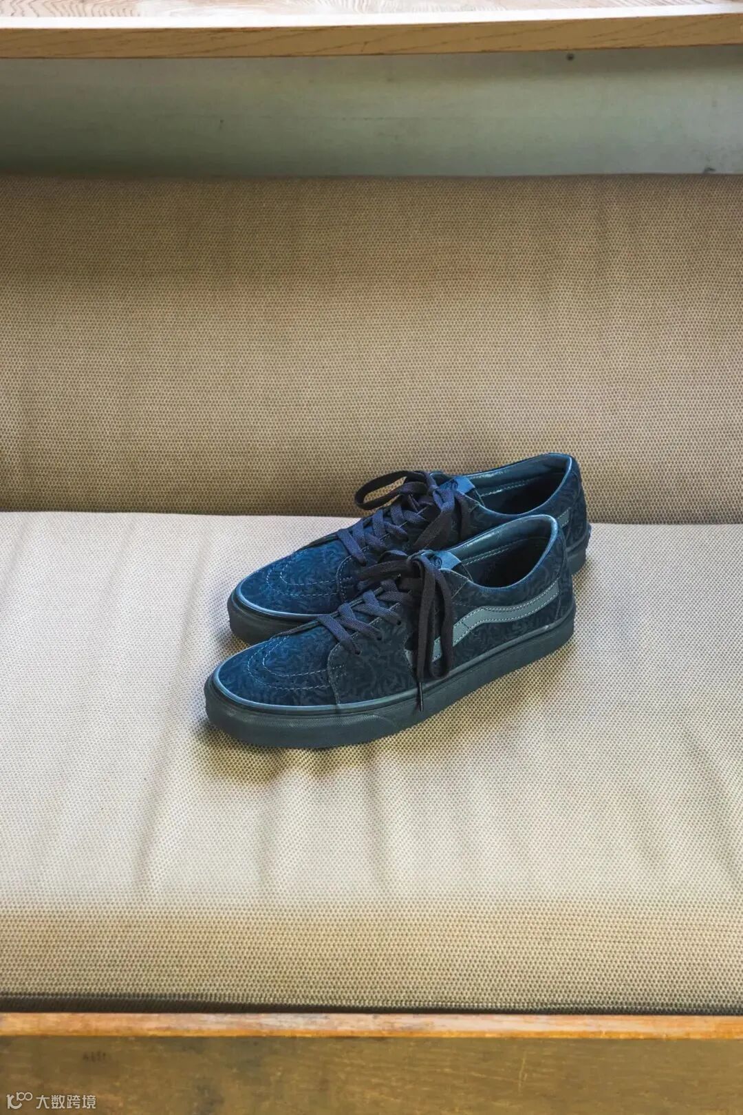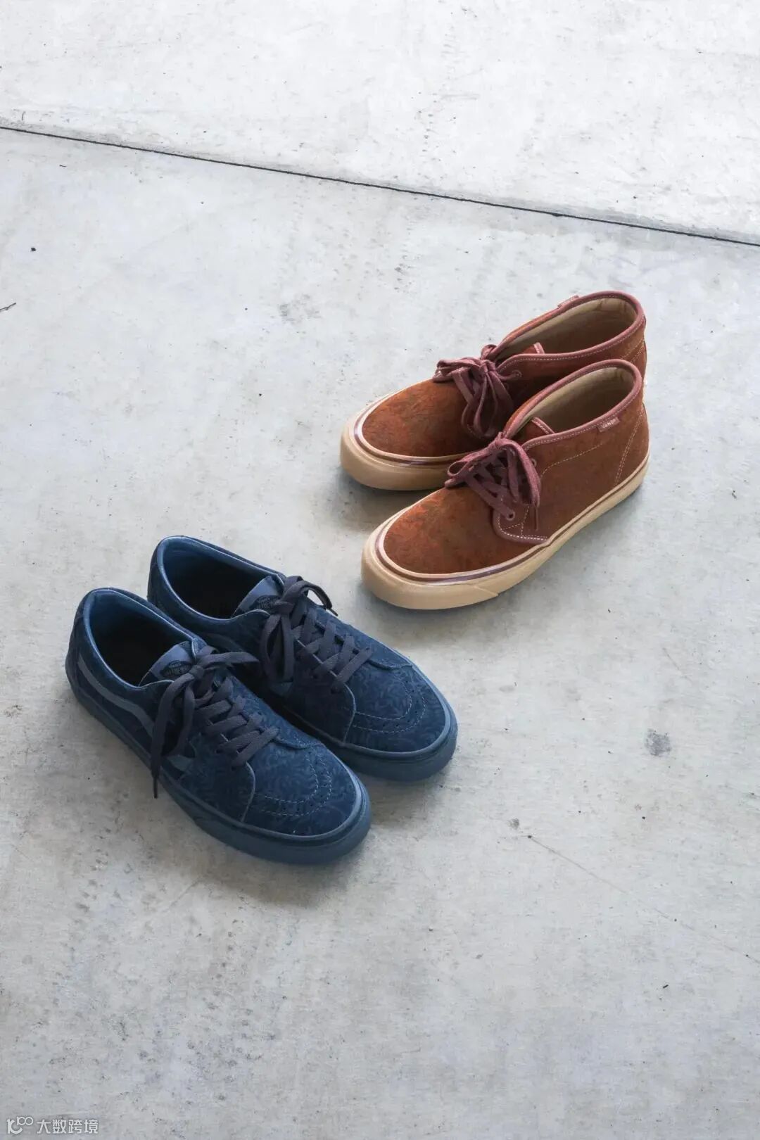 Vans x White Mountaineering 联名系列以 Vans Sk8-Low 和 Chukka 49 DX 两款鞋型为创作蓝本,运用蓝灰色和棕色两种纯色配色方案,释出两款彰显联名属性的鞋款。两双鞋款的鞋面均为搭配了 White Mountaineering 23AW 系列的原创植物图案印花的麂皮面料。更为不同的是,Chukka 49 DX 鞋款的植物图案印花使用了激光技术,使得鞋款简约但不乏味,诠释独特的设计美学。