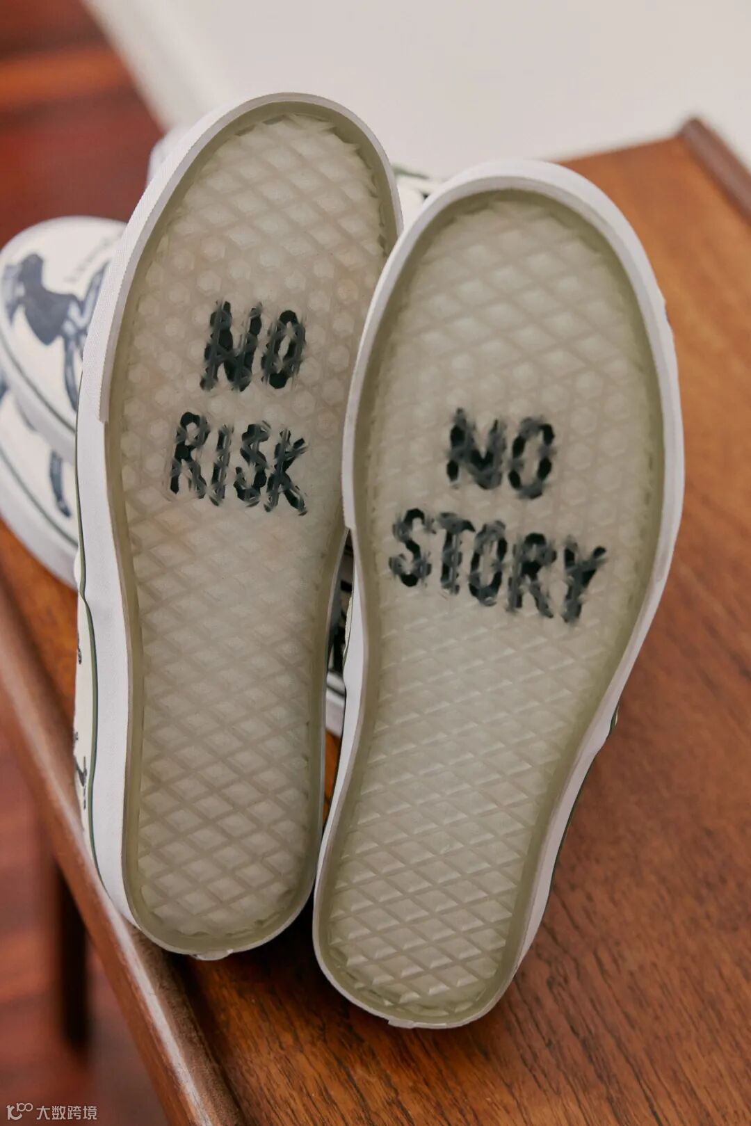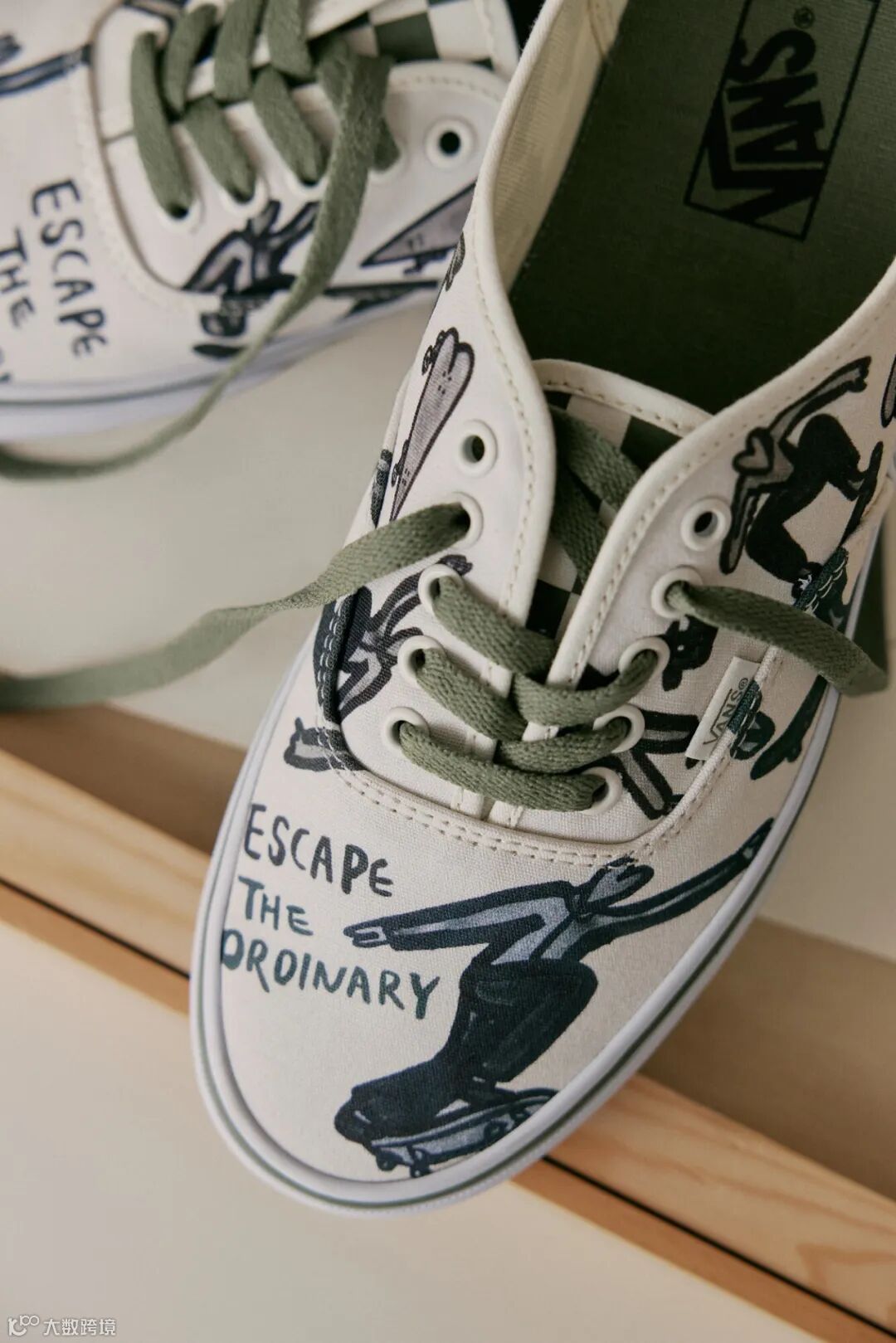 Bolin 的创作以“逃离平凡”为主题,主角是一个带有心形头的滑板形象,他在街头滑板,创造着属于自己的精彩冒险。这些插画图案被应用在 Vans Authentic 鞋款上,选用了米白色来突显 Bolin 标志性的水墨画风格。而服装系列则采用了大地色调,囊括了印花 T 恤、衬衫和针织短裤等款式,以丰富 Vans 爱好者的搭配选择。