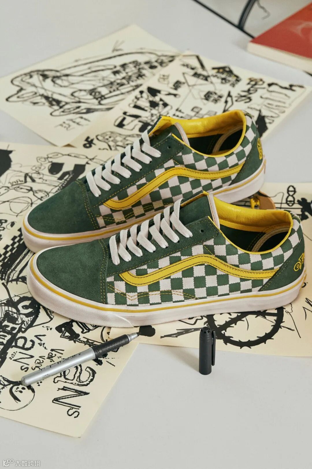 在此次创作中,Rarebirth 汲取了滑板运动员的坚韧精神,以“我是唯一能打破我内心之墙的人”的主题,创造了“Deckman”人物形象。Rarebirth 选择Vans Old Skool 鞋型为设计载体,在绿色和白色的主色调下,以黄色细节点缀,突出个性。鞋腰配备标志性的棋盘格印花,鞋后帮分别添加“Off the Wall”字样和“Deckman”人物图案,为鞋款增添独特魅力。同系列服饰还包括印花 T 恤、梭织衬衫、短裤、鸭舌帽和单肩包等单品,展现了 Rarebirth 对于滑板文化的独特诠释和对品牌经典元素的创意运用。