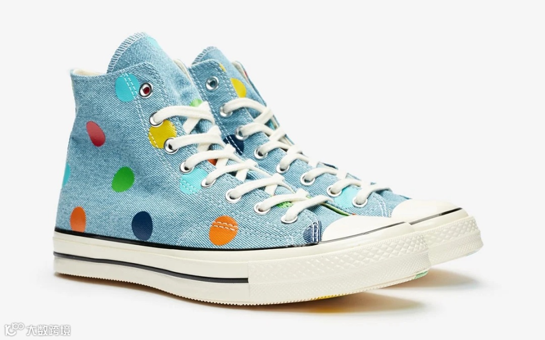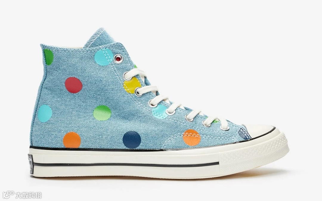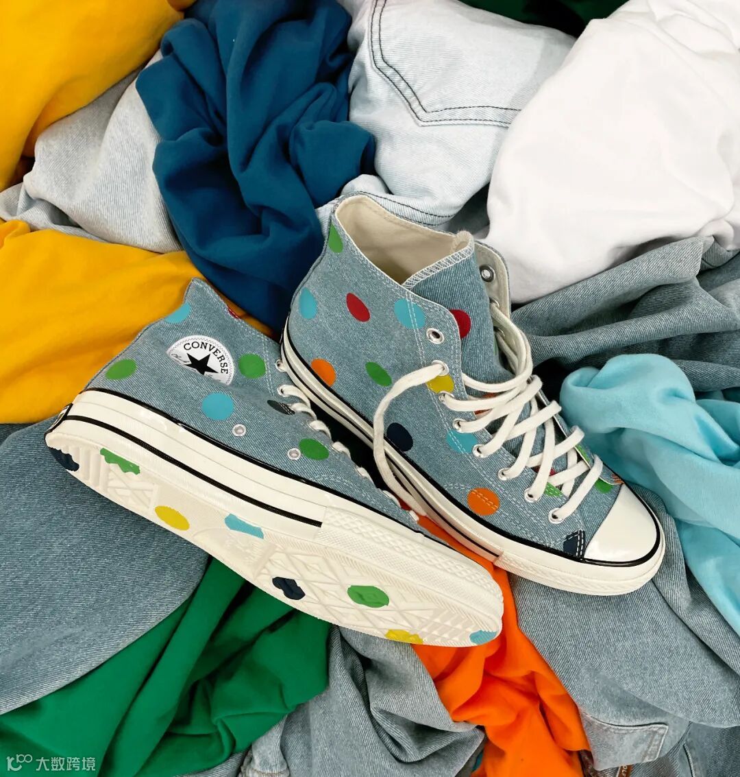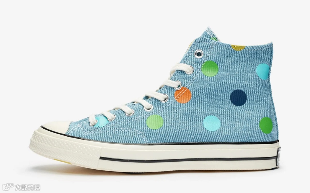 高端细致的工艺遇见跳脱常规的设计,大胆玩趣的GOLF WANG全新联名款Chuck 70诞生。Converse与Tyler, The Creator一起打造一场波点梦境,水洗感牛仔与彩虹波点的组合,演绎属于波点的幻奏曲