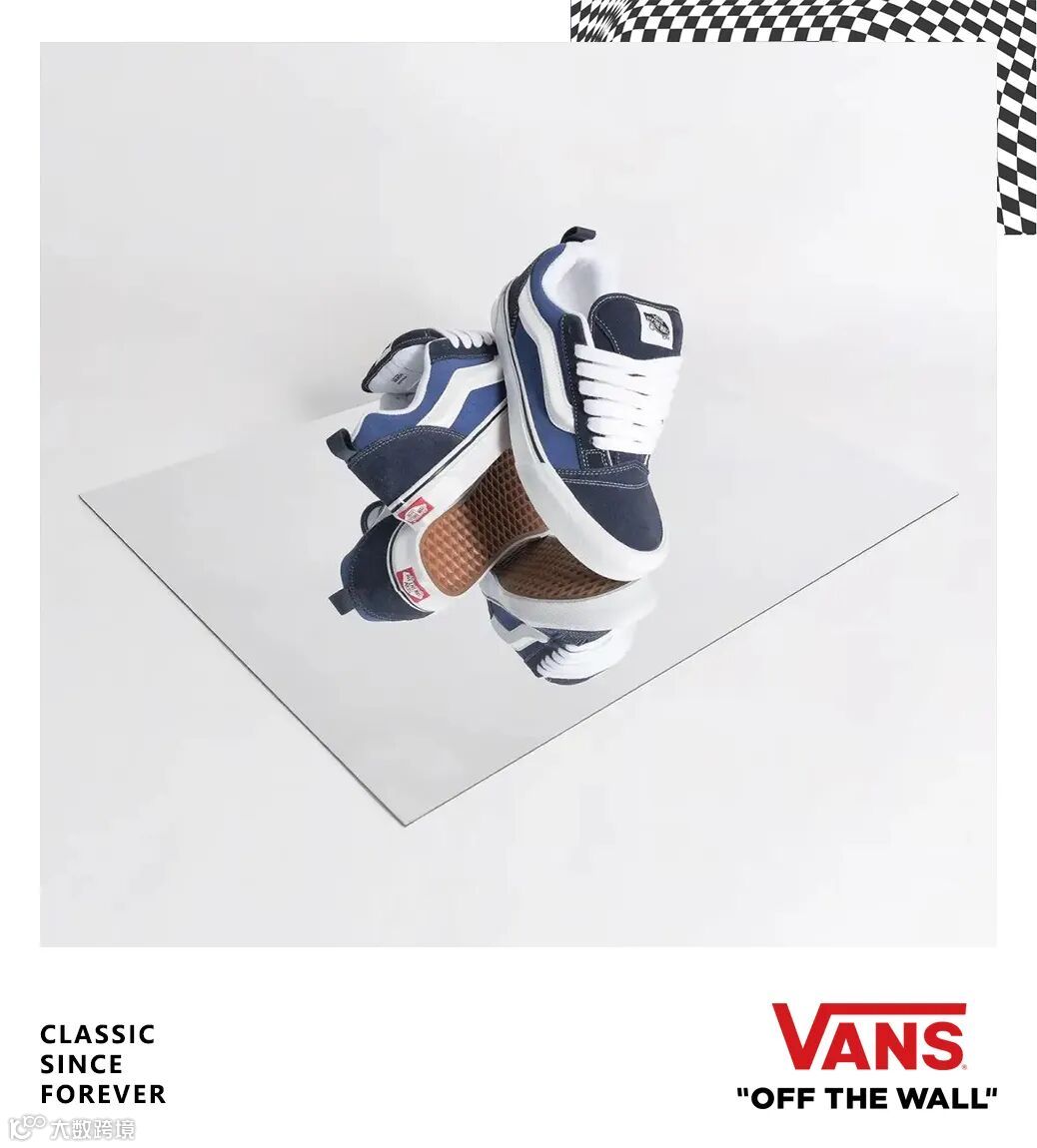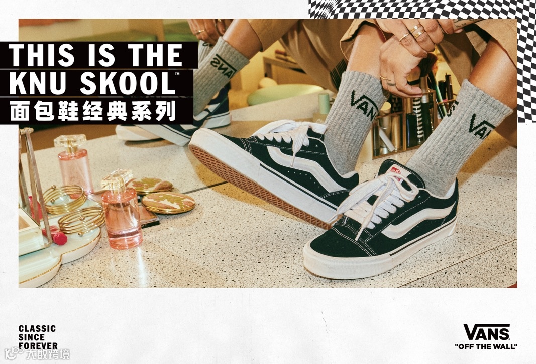 原创极限运动鞋服品牌 Vans 推出 Knu Skool 面包鞋经典系列,通过加入放大处理的鞋款外观营造独特的产品符号,在直观的视觉层面体现复古与创新美学。