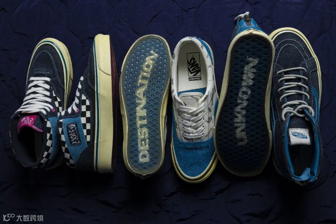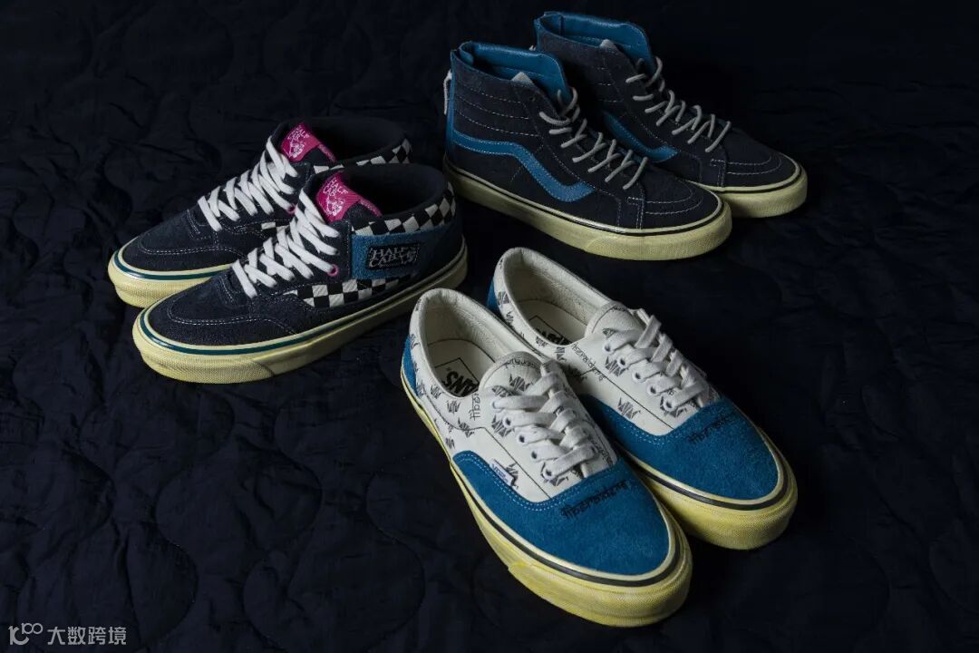 相较于上次合作,本次选用了另外三款 Vans 鞋型,分别为 Era 95 DX 、Half Cab 33 DX 和 Sk8-Hi Reissue Zip,采用水洗翻毛皮材质,以及 Liberaiders®︎ 品牌标志蓝色为主打色,融合白色或海军蓝,搭配细节处进行了复古处理的中底及印有 “DESTINATION UNKNOWN” 透明鞋底,致敬不断探索未知,忠于街头文化精神的品牌态度。