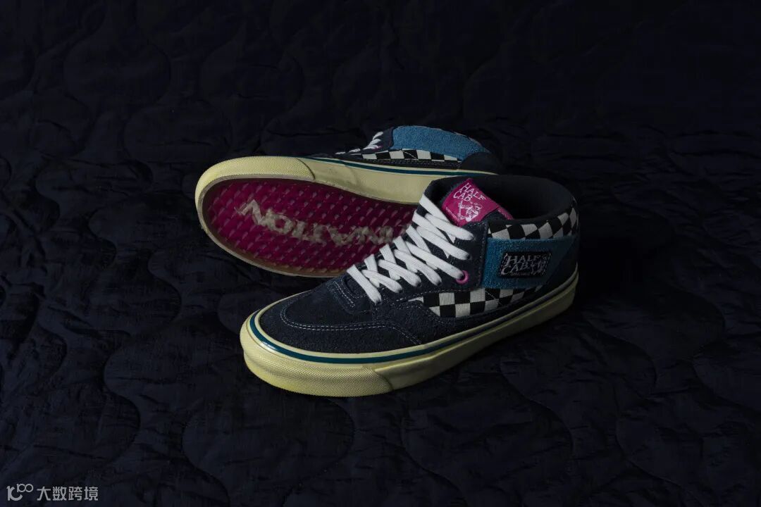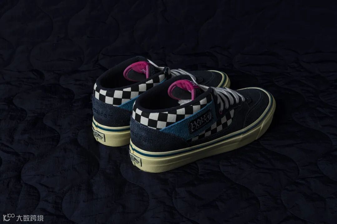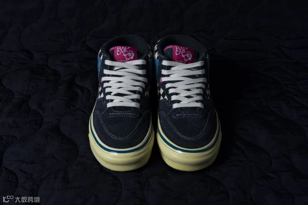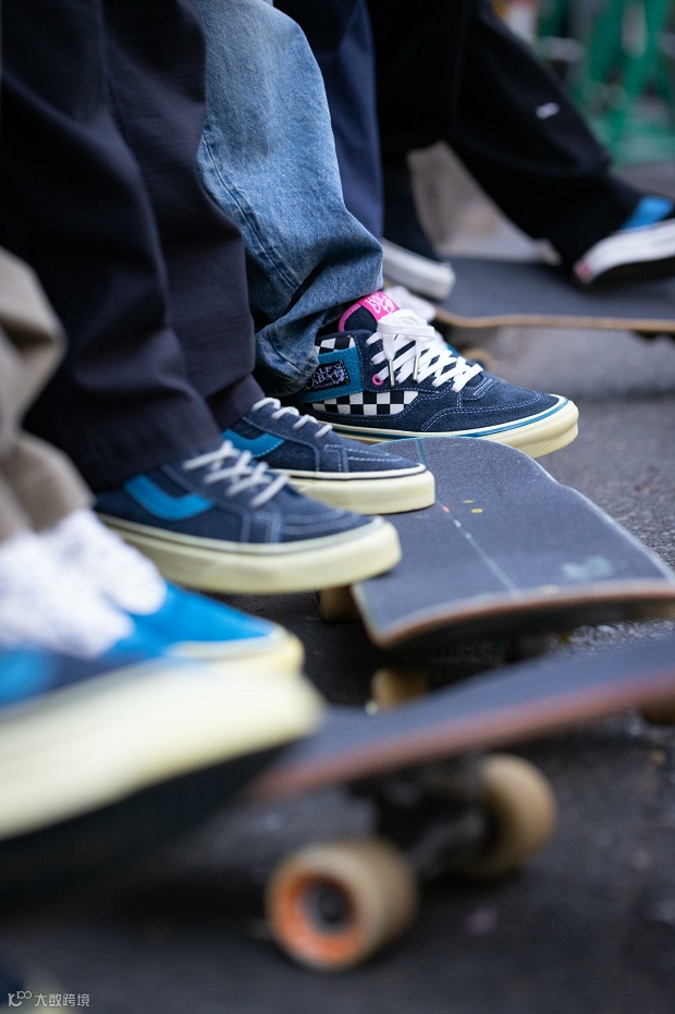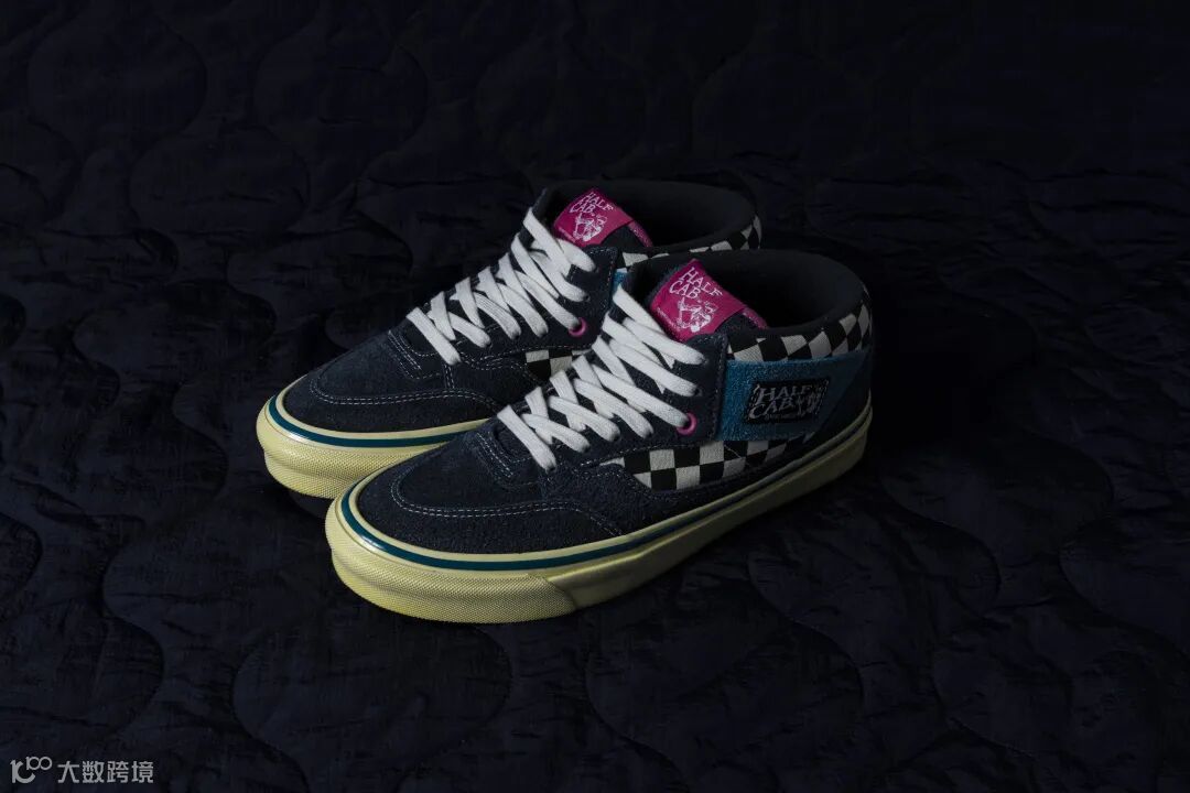 Half Cab 33 DX 和 Sk8-Hi Reissue Zip 则在鞋身大面积使用海军蓝,其中Half Cab 33 DX 在鞋腰处搭配 Vans 经典棋盘格元素与 Liberaiders®︎ 标志性蓝色侧缝标,鞋舌标签与上方第一个鞋眼点缀 80 年代西海岸独特的粉红色。