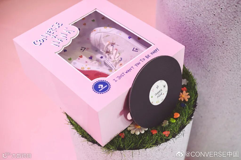 特殊鞋盒版:即日起将通过抽签的形式发售(具体抽签方式如下所示),粉红色的开窗设计,附赠精致的黑胶唱片装扮的音乐卡片,打开后就会响起娜娜的《To Be Happy》