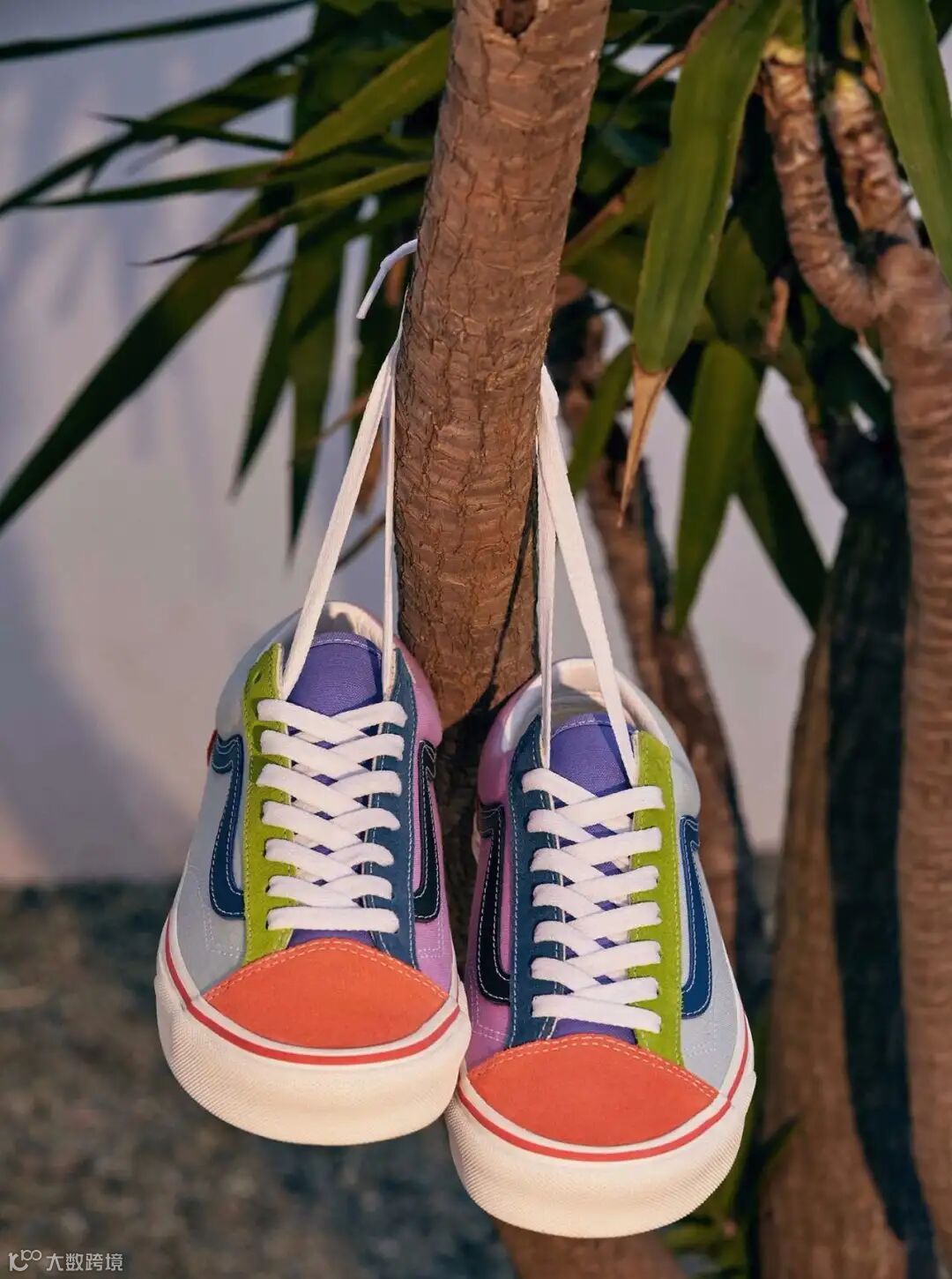 搭配紫色的鞋舌和墨绿色的侧边条纹
