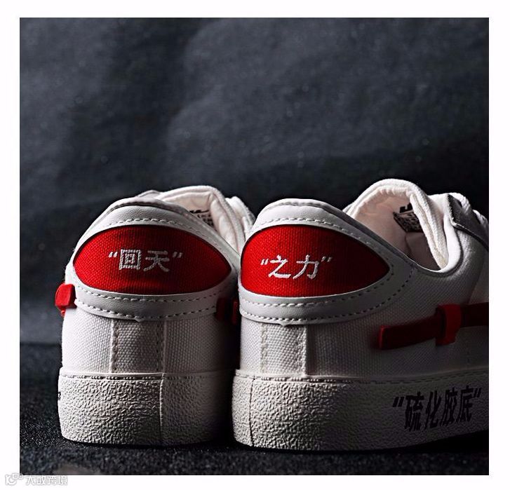 off white式鞋尖的 left和 right则入乡随俗的转换成了zuo和you 印在鞋身,使得色彩单一的球鞋,更加具有中国风的时尚感。