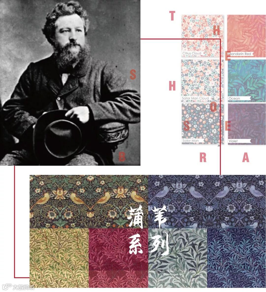强韧透气的面料,融合19世纪英国艺术家威廉莫里斯William Morris的经典植物图案,加上丰富的色彩运用,使得蒲苇系列产品在个性张扬的同时又不失典雅