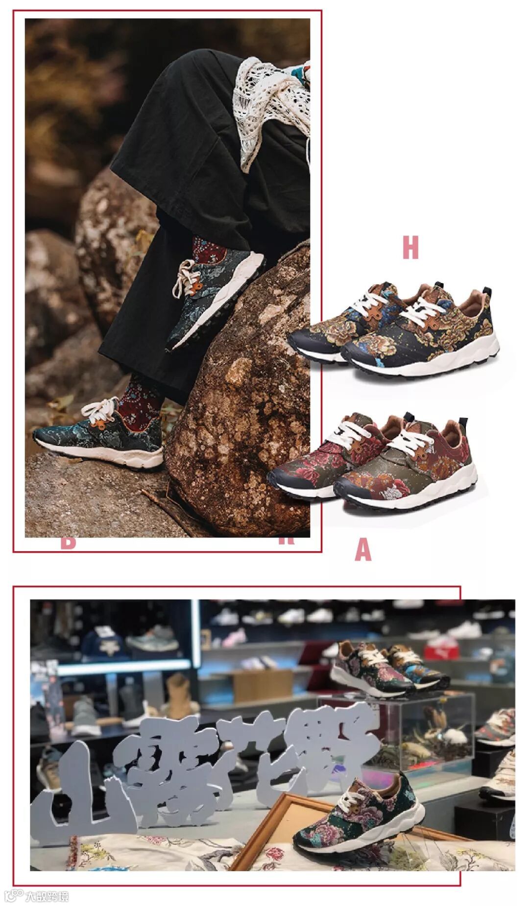 作为户外运动发烧友的创始人的杨超和太田,乡野的生活让他们欣然向往之,却也不肯割舍城市的魅力。除了融入着独特的东方传统美感,将和风印花、中国古典美术纹饰和低饱和的淡雅配色烩于一炉,两人还巧妙的将户外与城市流行的风格结合了起来,做到户外元素与SNEAKER流行文化的融合,这便是“山雾花野”独有的品牌特色。