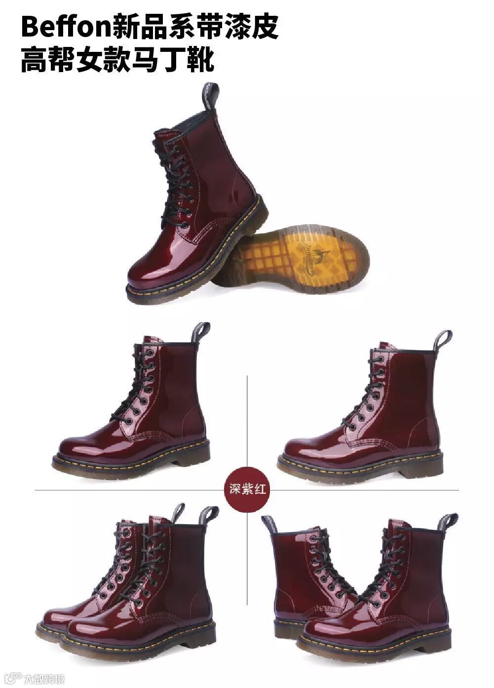 延续Beffon一贯马丁靴型,鞋型修脚,用深紫红漆皮制作鞋身也非常炫。鞋内手工制作,采用“Heat sealing”热熔焊接工艺,缝线回针缝合压线,使鞋面与鞋底牢固地缝合,确保耐用程度。同时采用Airmattress科技气垫,具有减震和缓冲的抗疲劳作用,使行走更加柔软舒适。