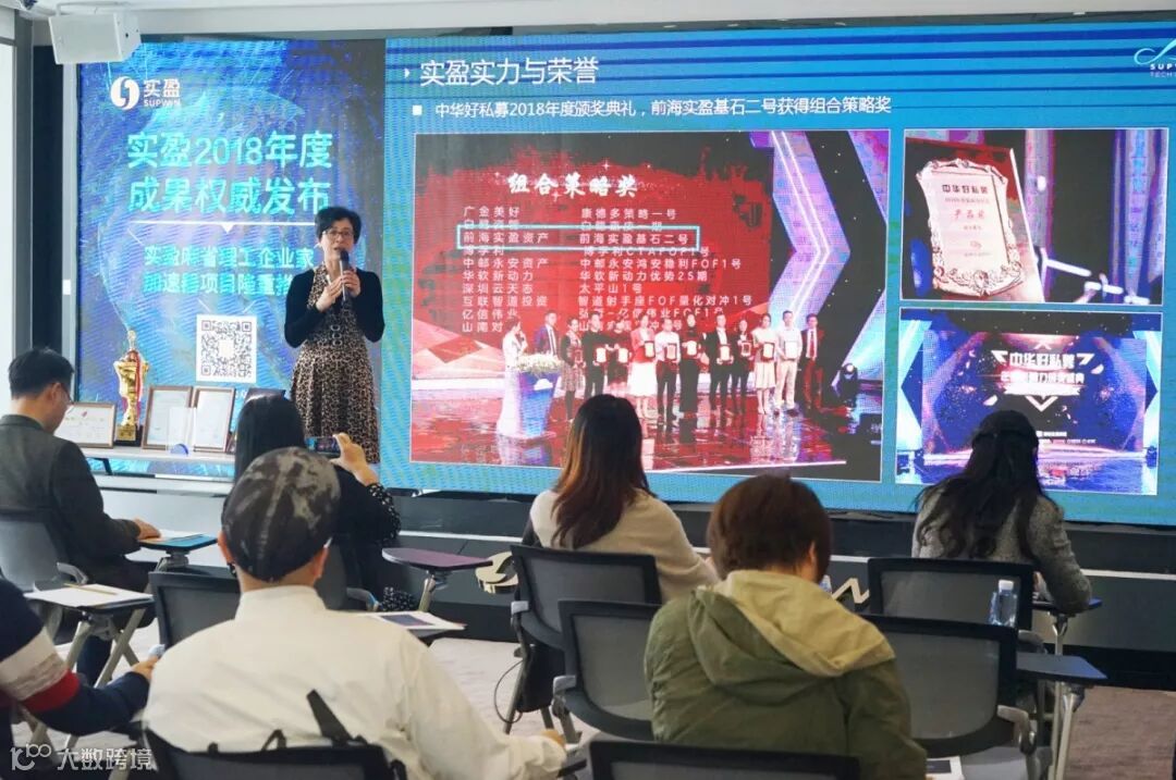 (实盈执行副总裁邢瑜女士为来宾介绍实盈2018年成果)