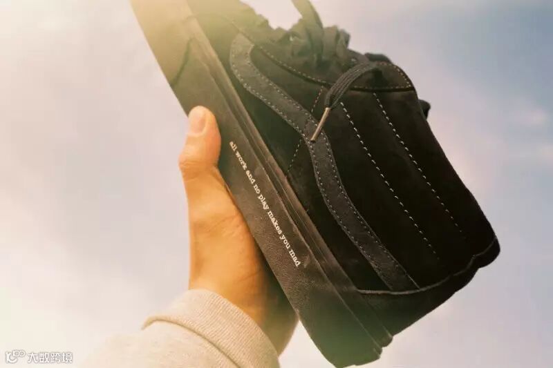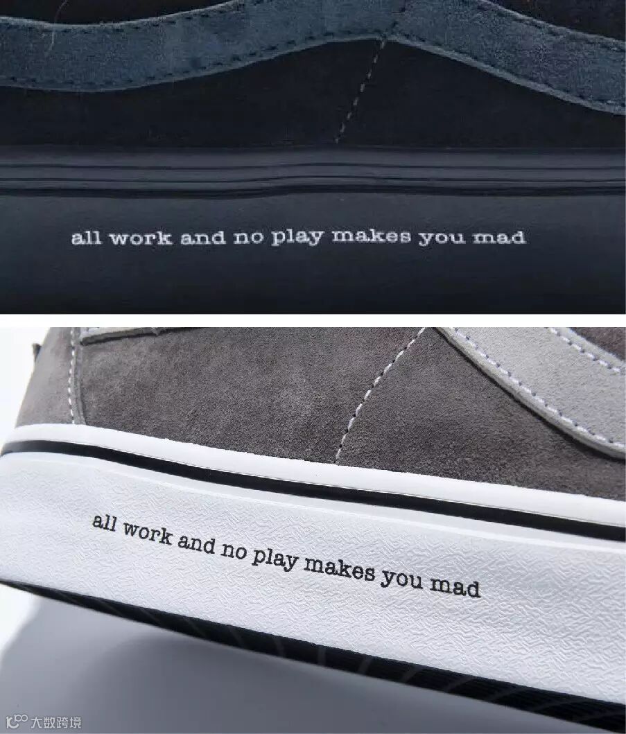 Madness x Vans最特别之处,在于大底内侧印字“all work and no play makes you mad”,取材于“六叔”手上的纹身。