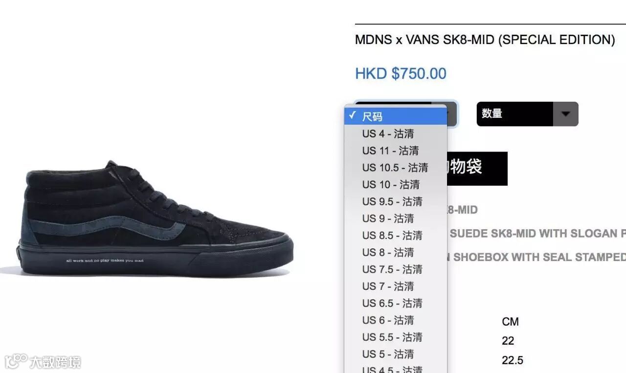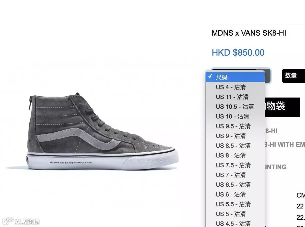 我要购买Vans x madness+姓名