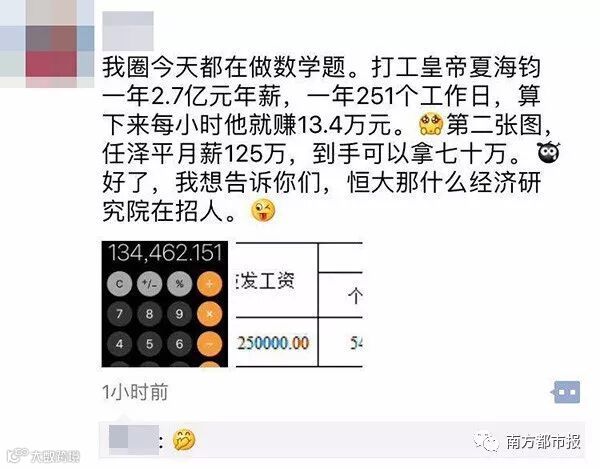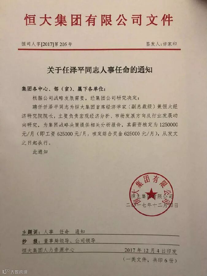 刚刚从方正证券离职的任泽平,确认加入恒大集团,担任恒大集团首席经济学家(副总裁级)兼恒大经济研究院院长。年薪为税前1500万元。