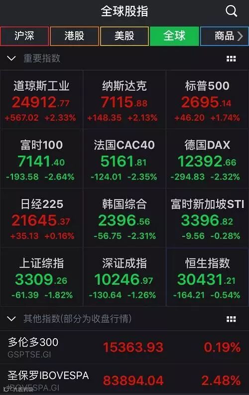 截至北京时间2月7日15:45全球股票市场情况