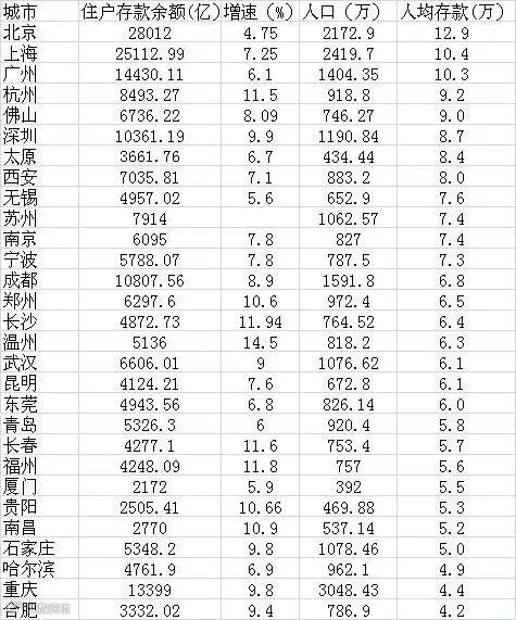 数据显示,京沪不仅是住户存款总量大,而且人均存款也排在前两位。以北京的住户存款余额,除以北京常住人口数量,去年北京人均存款约12.9万。