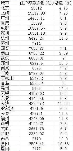 (说明:部分重点城市如天津、沈阳、济南、大连等城市的住户存款数据对外公开部分搜集不能齐全,在此没有一并纳入统计。)