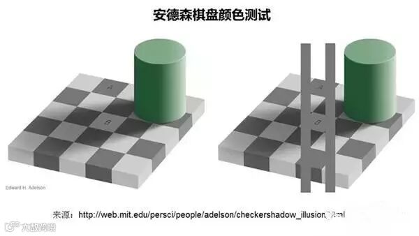 必须指出的是,这里归纳出的优势劣势也是相对而言,现实中很难绝对地认为在投资领域电脑的表现比人脑更强。比如,量化投资覆盖宽度更广,但这并不代表投资业绩一定会更好,反而是有证据表明“小而专”的投资策略业绩更好。上面石油公司的例子也没有体现出量化投资构造成百上千股票组合的优势。另外,下面的左图常常被用来说明电脑超过人脑,并引申暗示量化投资好于传统投资。因为几乎所有人都认为A和B是不同的颜色,但电脑则可以准确地读取他们的RGB值同为120,120,120,颜色完全一样。右图是一个证明。还不相信的读者请下载一个屏幕取色软件自行比较。