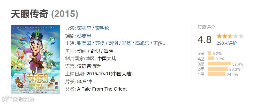天眼晶晴这款饮料的IP,是中南卡通股份有限公司制作的动画片《天眼传奇》中的人物形象。这部2015年上映的动画电影,在豆瓣上只有4.8分的评价。