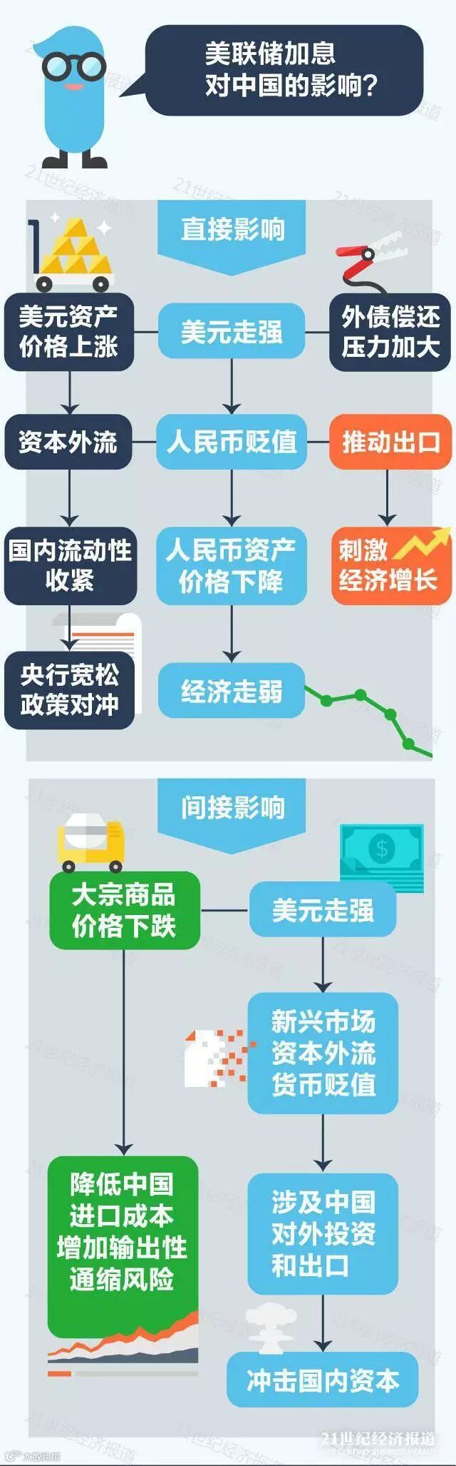 CCTV证券资讯频道金融研究院认为,美联储加息后的影响主要分成两部分: