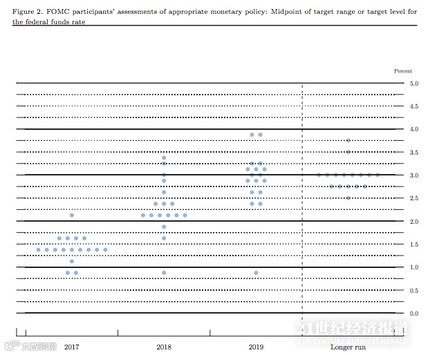 美联储发布的点阵图显示,大多数美联储委员认为2017、2018年各加息三次。