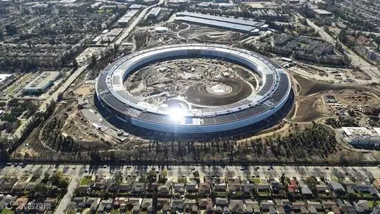 早在五年前,苹果前任掌门人乔布斯就开始建造这个全新的总部大楼,也因此被称为乔布斯生前的最后一件作品。这个苹果飞船总部大楼占地26万平米,耗资50亿美元,圆形的外表既像飞碟,又被外媒称为“巨型甜甜圈”,先来鸟瞰大楼整体来感受一下。