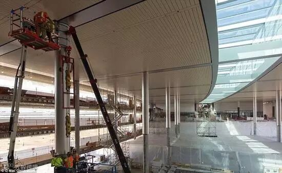 最近有外媒航拍了大楼的施工现场,展现了这个庞大建筑各处的细部特征。根据此前建筑经理透露的消息,光是主建筑部分就花费了将近十亿美金,建筑落成后将有13000名员工在此地工作,大楼设有慢跑道和自行车道,还有一千多辆自行车停放在一边,供人随意使用。