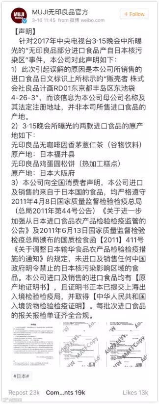 所以,在对于无印良品和永旺的指责上,315晚会确实是闹出了很大的乌龙。