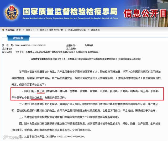 因为,在该局关于日本核辐射问题与日本食品进口的文件中(比如下图这个),他们的表述方式就容易令前来查询政策法规的记者和普通人认为:只要是来自被禁止地区的产品(不论是不是那里生产的),都不能在中国售卖。