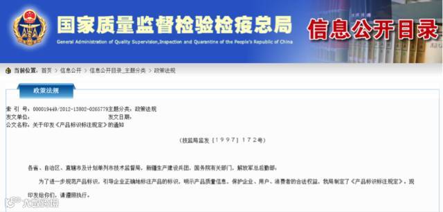 然而,“国家质量监督检验检疫总局”出台的《产品标识标注规定》的第九条却规定: