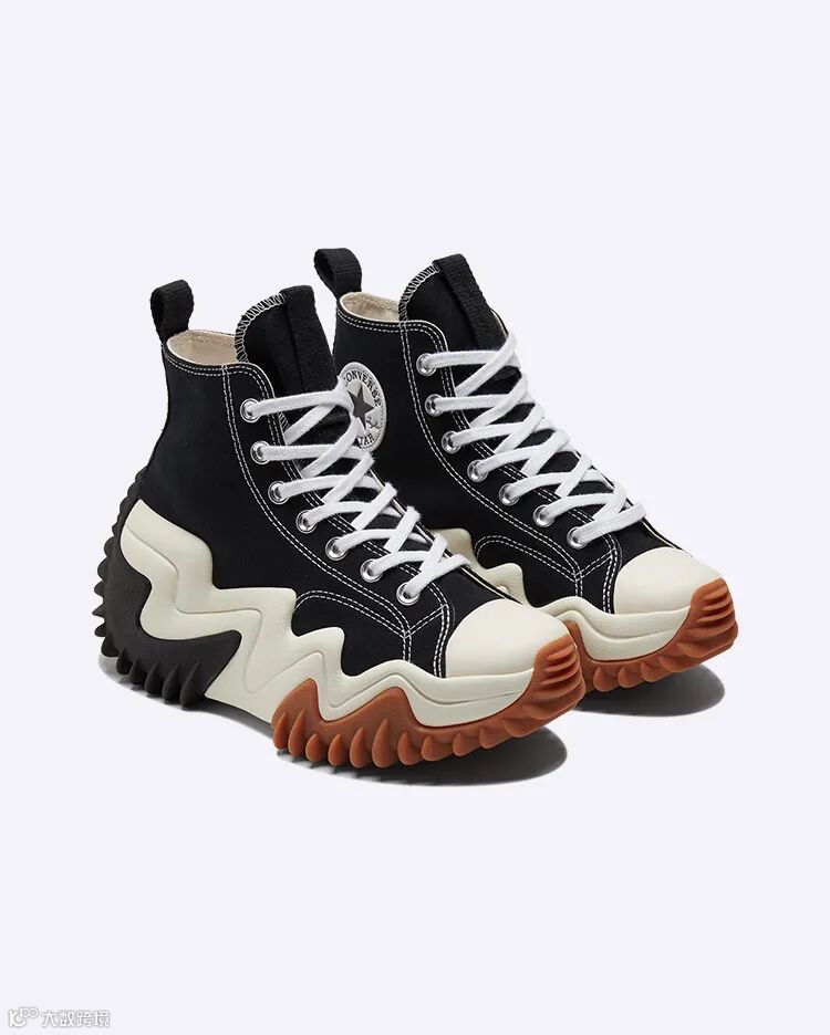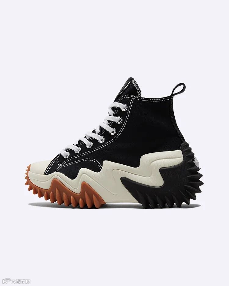 但夸张的波浪形厚底和具有雕塑感的外底斜纹